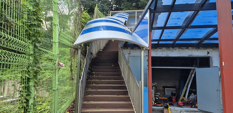 계단캐노피외 스텐파이프 50*50 50*30 폴리카보네이트.복합판넬
